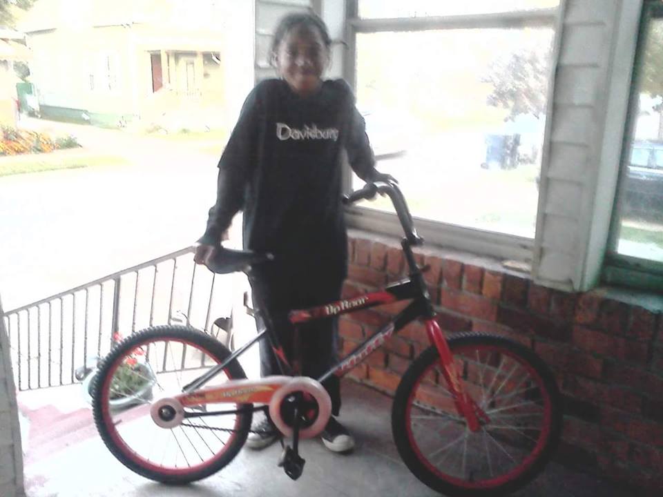 R.I.C.H. Kid, Kwame, smiling with his bike, donated by Tissy Landrum!